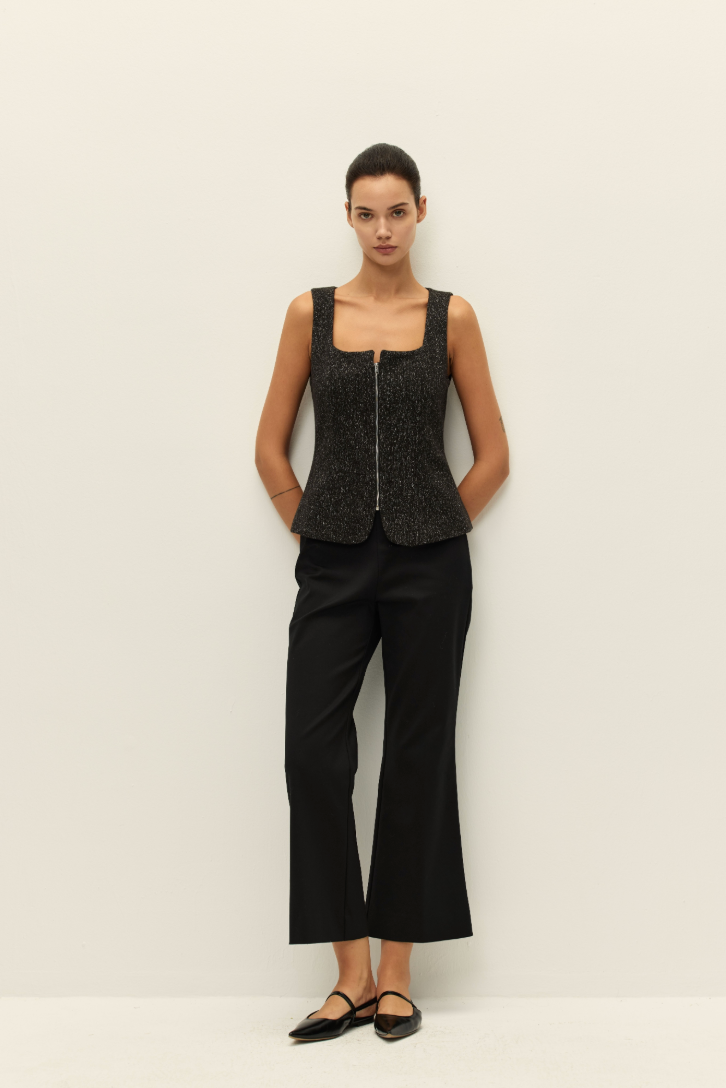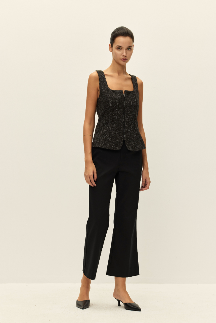 Slip into effortless style with the Ellen Top—a sleek black twill tank featuring a convenient front zip that makes getting dressed a breeze. Designed to pair perfectly with the Rosalie Shorts, this versatile piece transitions seamlessly from weekend adventures to casual weekday vibes. The structured twill fabric keeps its shape while the relaxed fit ensures all-day comfort. Mix, match, and make it yours!