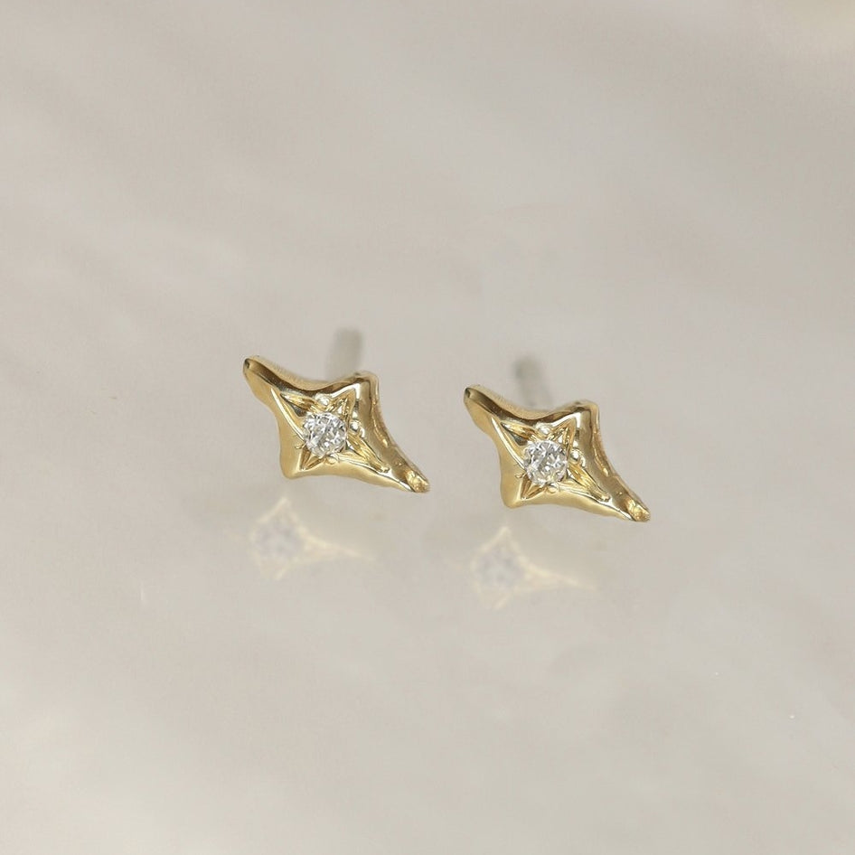 A little piece of the galaxy has been caught and set in these glistening star shaped diamond studs. Let these diamond earrings be your guiding light to remind yourself that you have the power to do anything, you just have to trust yourself.