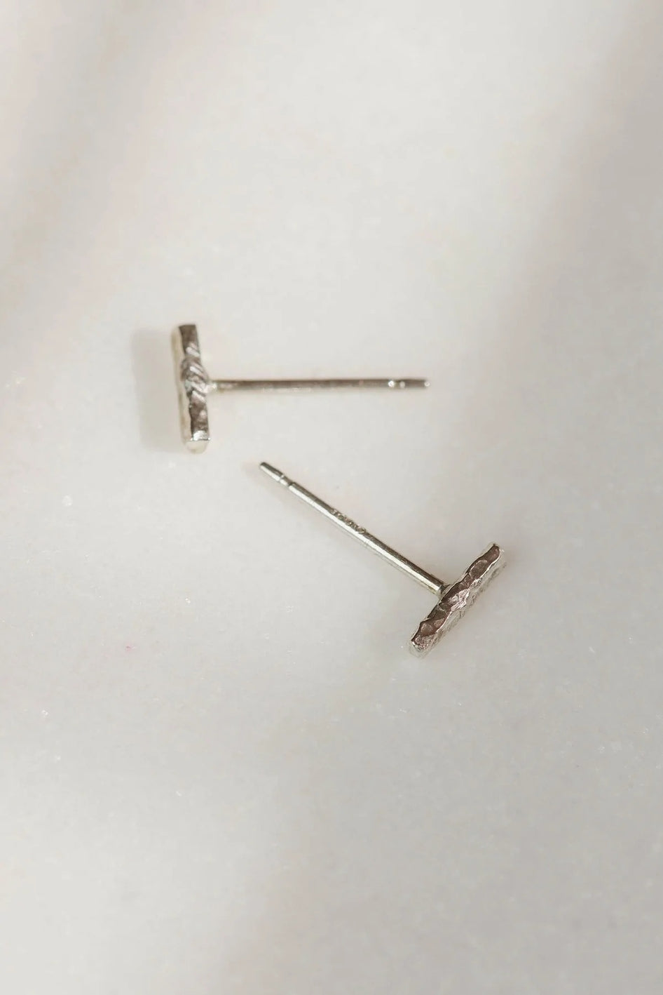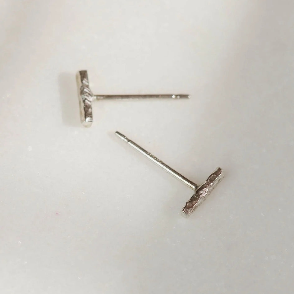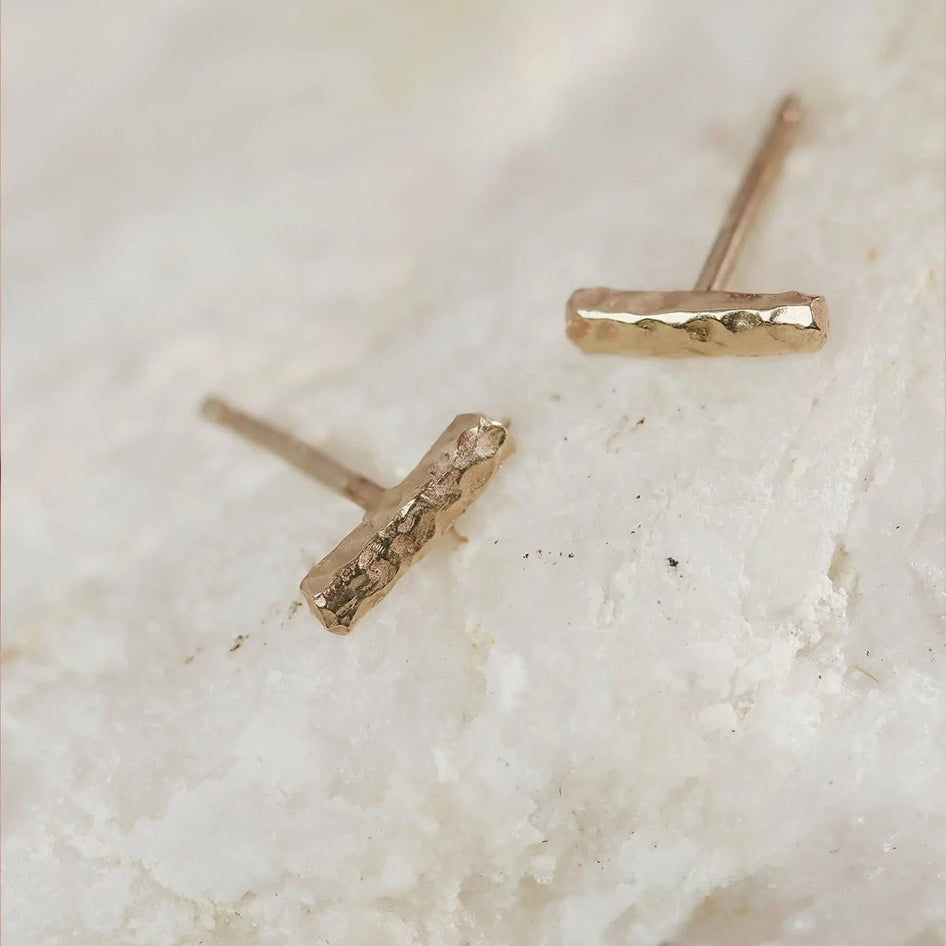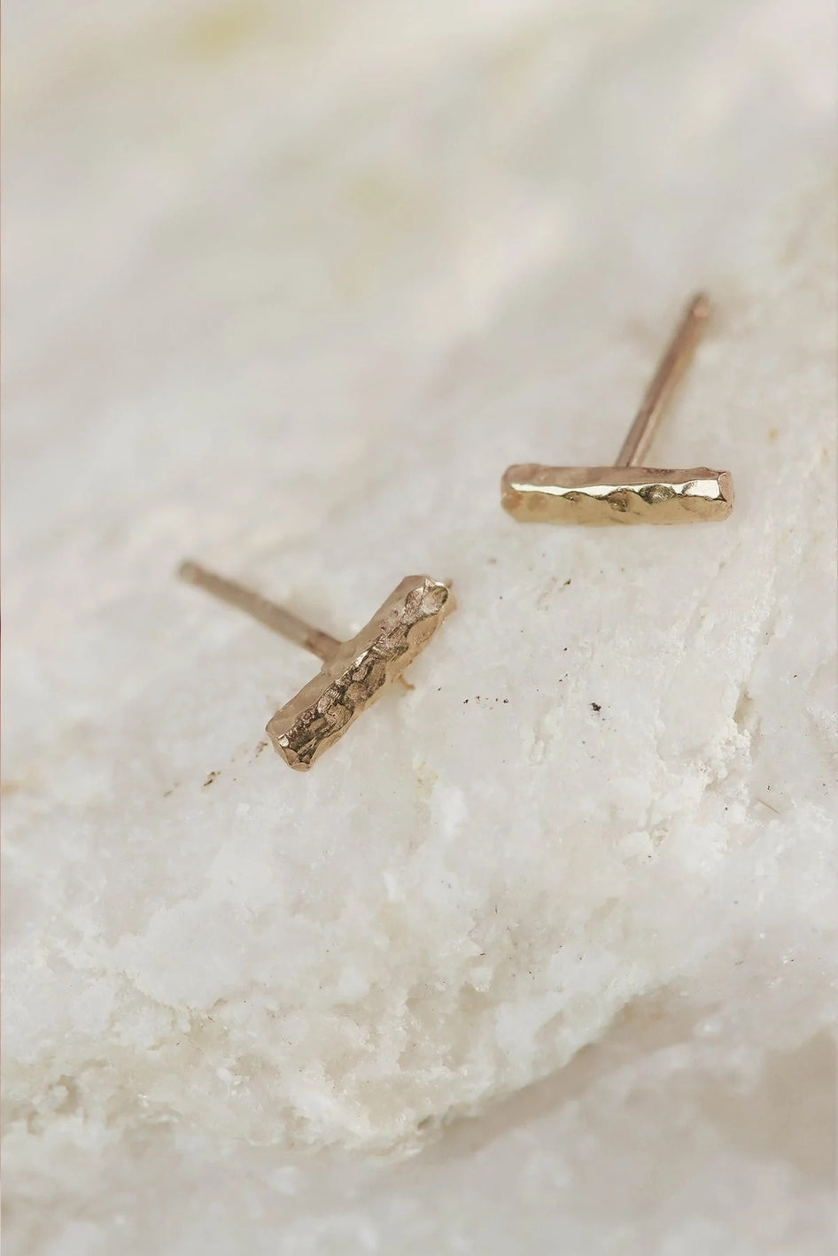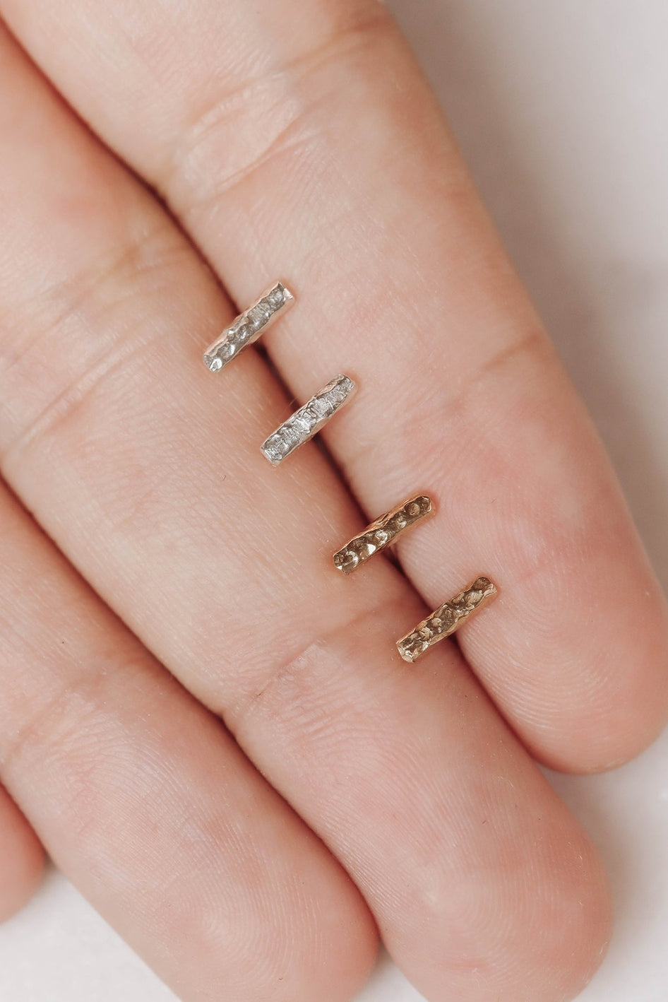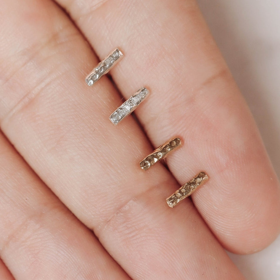 A perfectly petite, hand-textured linear stud sparkles in the light. Dainty and beautiful for everyday wear. Available as a single or a pair for all your second piercing needs