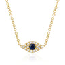 The diamond evil eye choker that features a 0.08 carat blue sapphire center stone surrounded by 0.05 carats of pavé diamond set in 14k yellow gold.