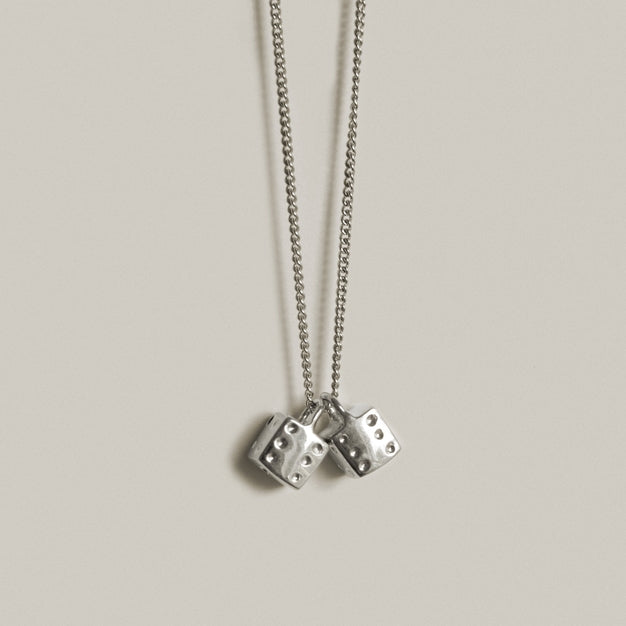 Sterling silver chain and dice pendants 18” chain, 6mm pendants