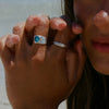 Dive into coastal elegance with our Blue Bold Sea Glass Band! Each piece features authentic Hawaiian sea glass, hand-picked and tumbled by ocean waves. The stunning blue stones (5mm-15mm) are perfectly paired with nickel-free 925 sterling silver for a splash of beachy charm. Wear it swimming or surfing—it's completely ocean safe! A playful treasure that brings Hawaii's shoreline to your jewelry collection.