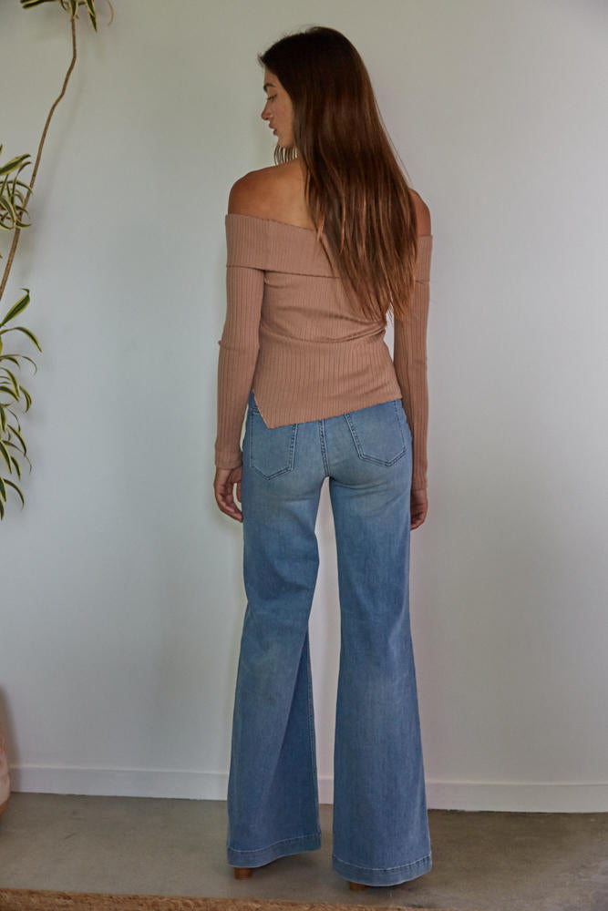 Unleash your flirty side with the Darcy Top Knit! Made with soft knit rayon, nylon, and polyester, this top features a fold over off-the-shoulder design, perfect for showing off your neckline. The ribbed texture adds a touch of style, while the side slit allows for easy movement. Express yourself in this playful top!