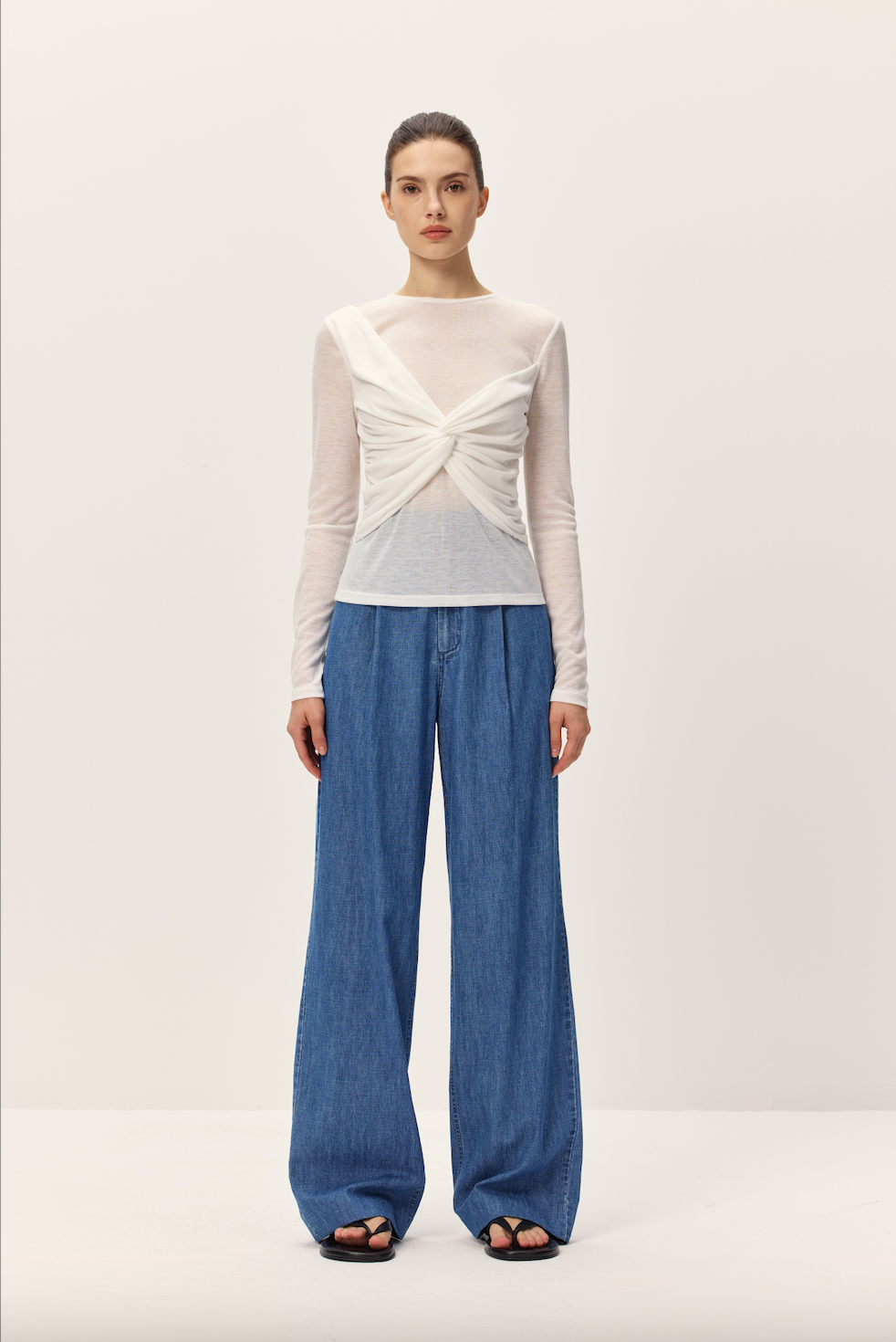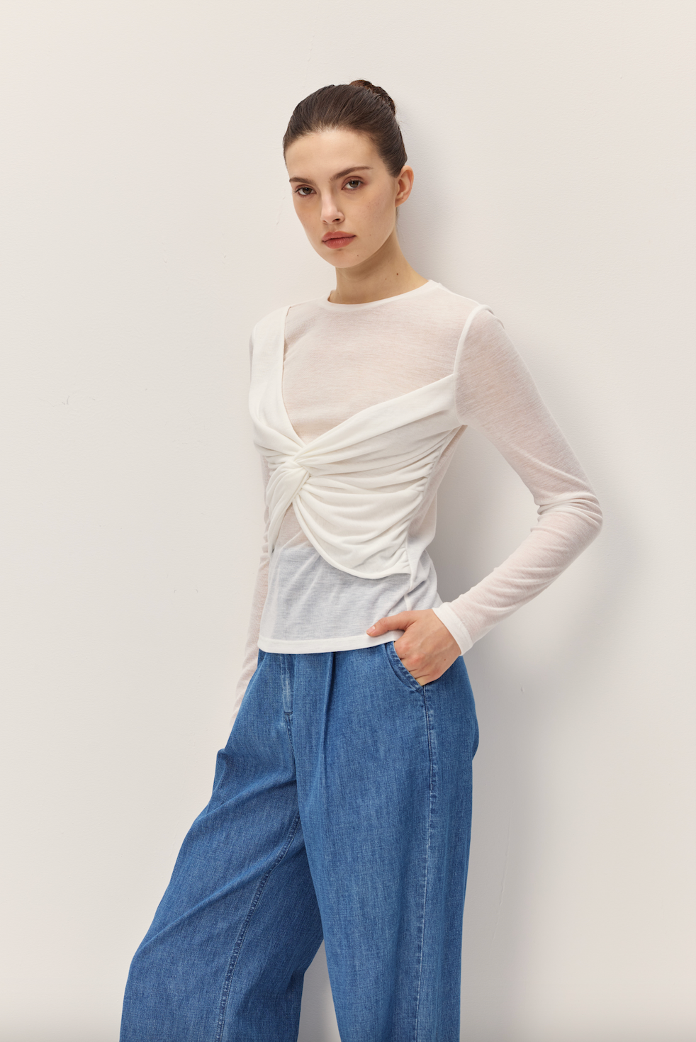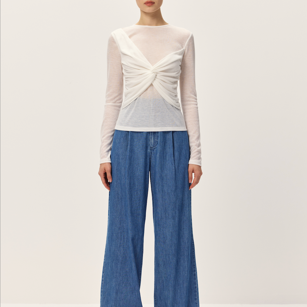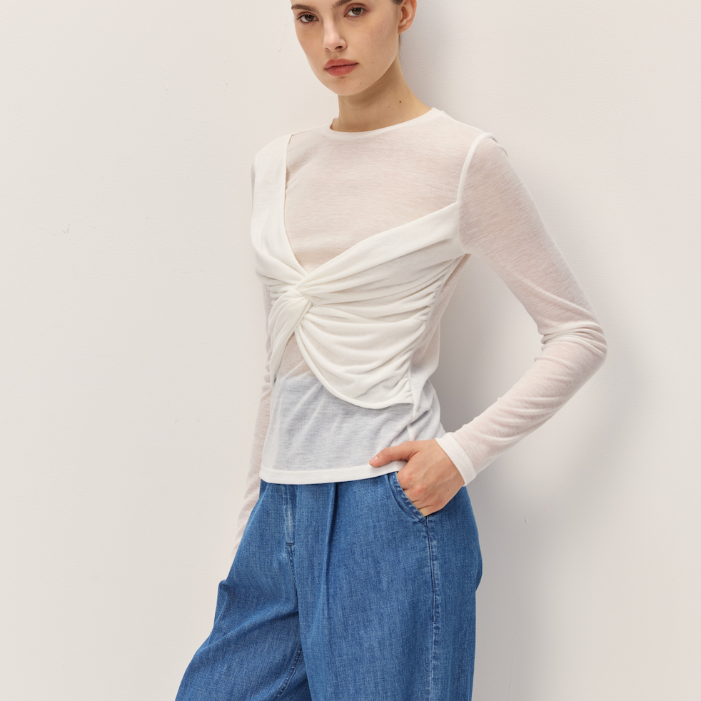 Effortlessly chic and undeniably flirty, the Nerida Top brings a touch of elegance to your everyday rotation. This slightly sheer long-sleeve beauty features a charming crossover detail at the front that flatters and flows with ease. Perfect for layering or wearing solo, it's the versatile piece that transitions seamlessly from casual coffee dates to evening adventures. Dress it up or down—this top does it all with understated sophistication and a hint of playful allure.