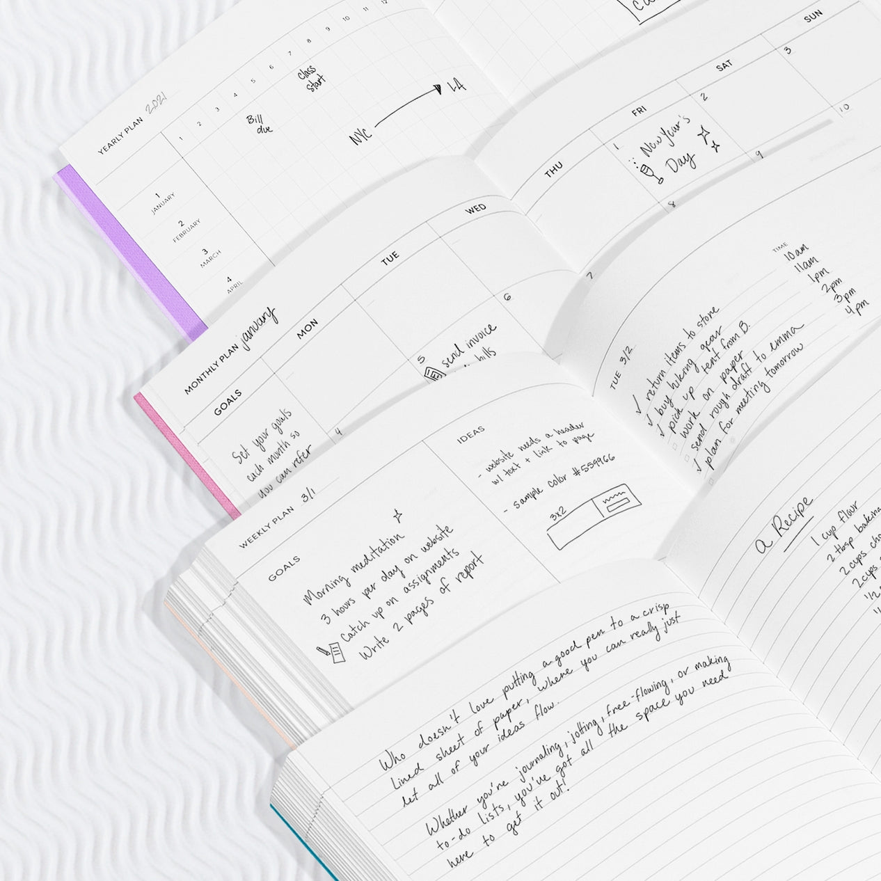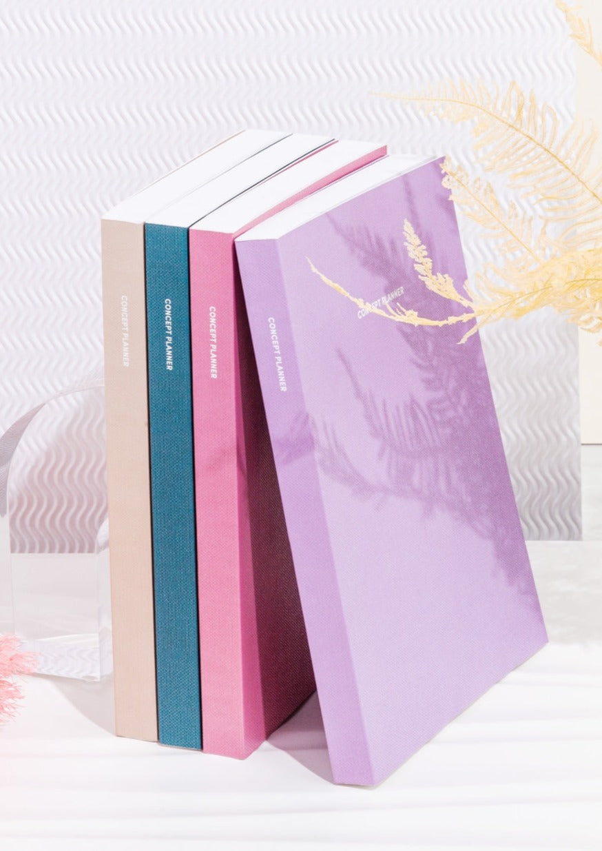 Our bestselling Concept Planner is back in new colors to encourage goal-oriented and idea-driven scheduling. There’s designated space for your goals and ideas at the start of each open-dated yearly, monthly and weekly section, plus plenty of room for notes and to-do lists. Smyth Sewn binding lies flat when open and a durable, fabric-like cover is built to last.