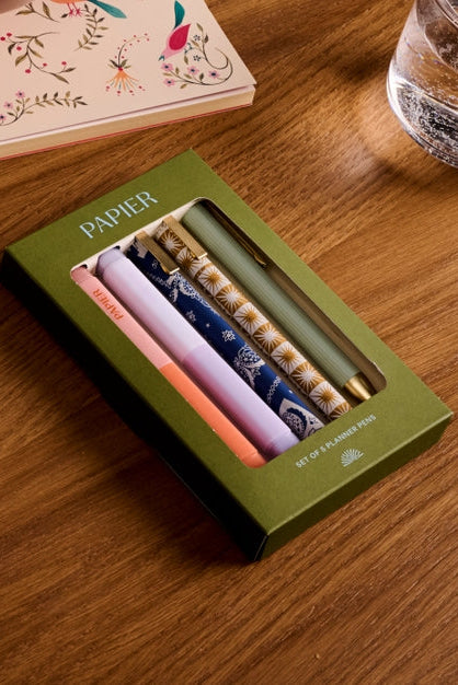 Enhance your stationery collection with Papier's thoughtfully curated pen set, designed by our in-house team. The versatile pack includes two fineliners, two highlighters, and two rollerball pens - perfect for everything from making lists to sketching. Packaged beautifully, this set appeals to a wide range of customers looking for quality writing tools in one convenient package. A must-stock item for retailers looking to offer a premium, all-in-one solution for their customers.