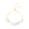 Add a touch of whimsy to your wrist with this handmade bracelet featuring an 18k gold plated sterling silver pull tie chain. Playfully adjustable to fit any size, it’s adorned with a charming row of luminous freshwater pearls that catch the light with every move. Perfect for layering or wearing solo, this bracelet brings a fresh, fun sparkle to your everyday style.
