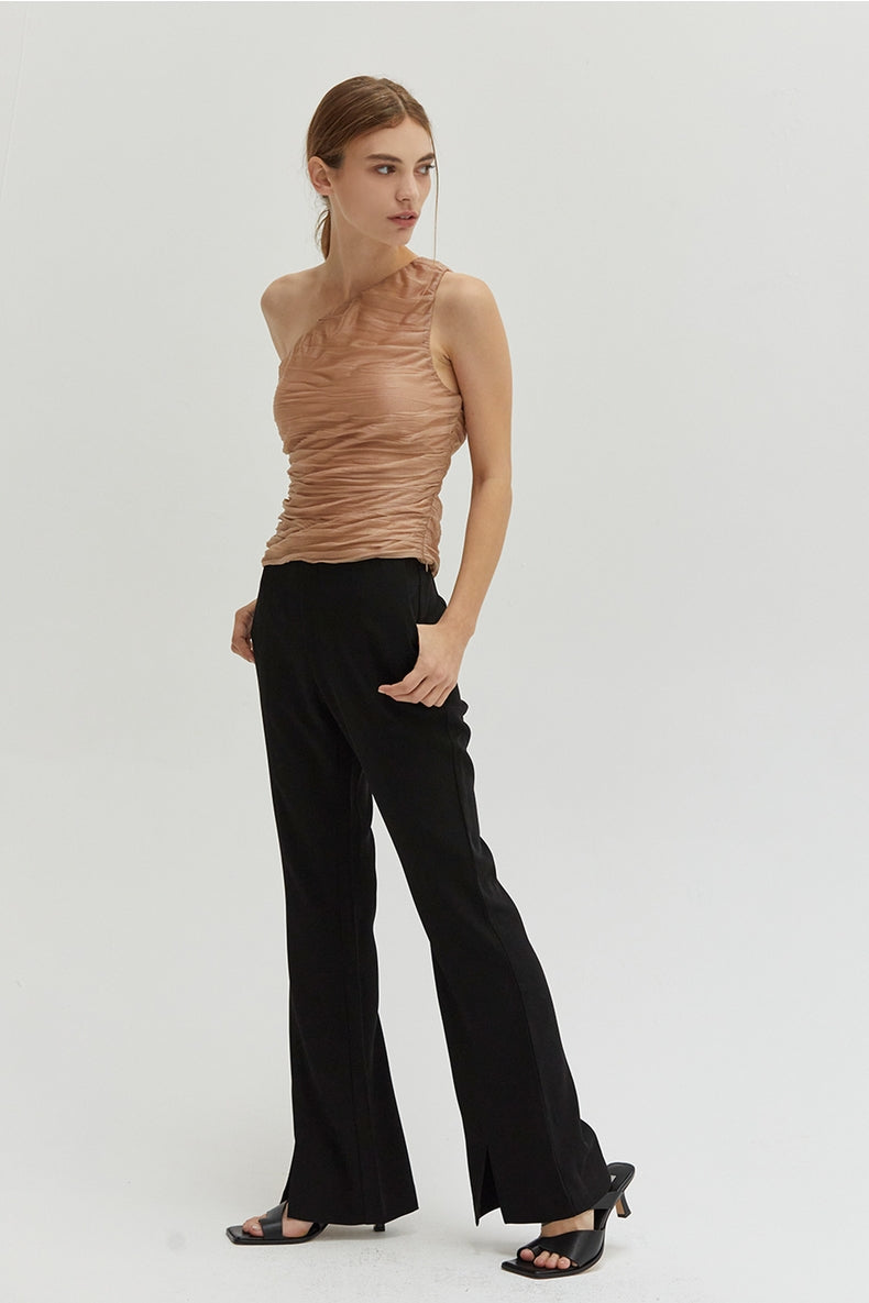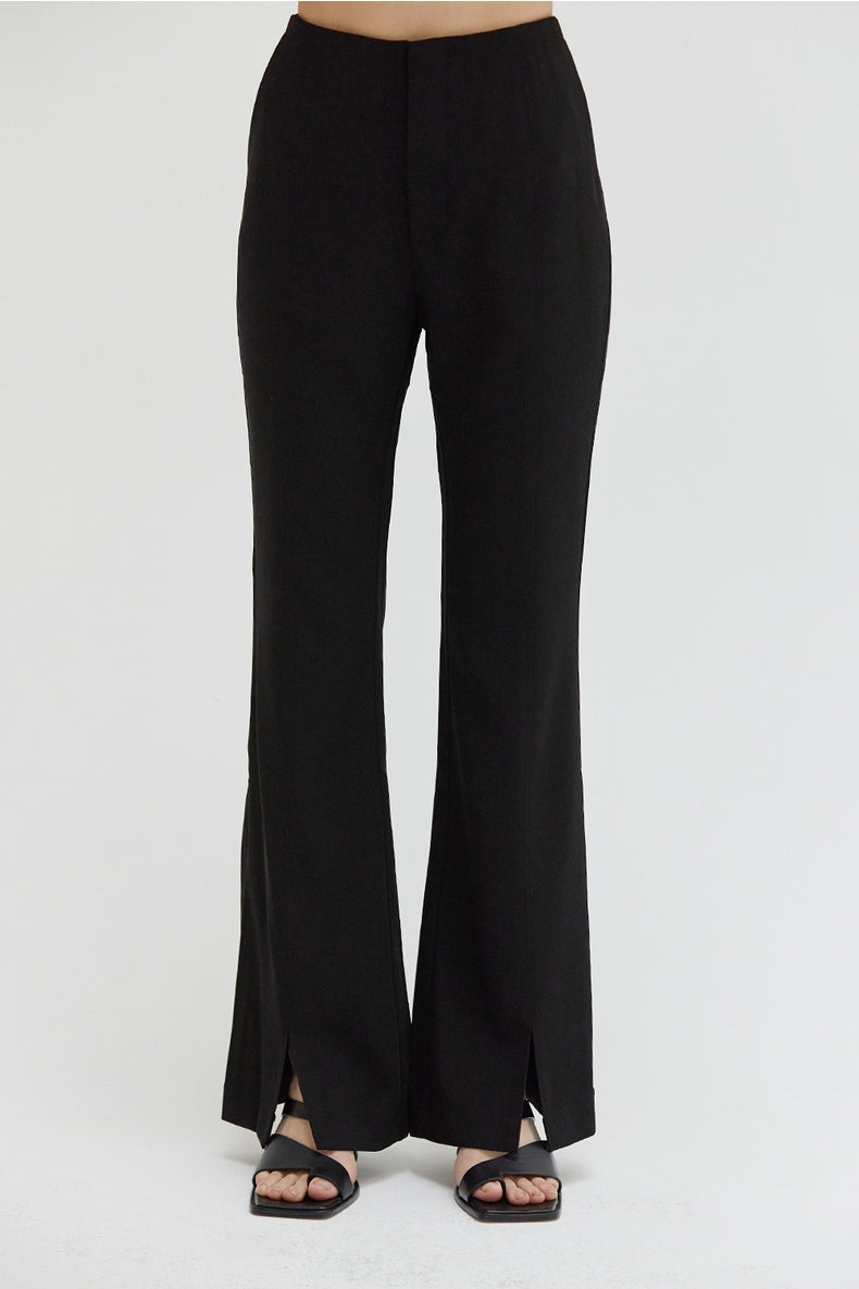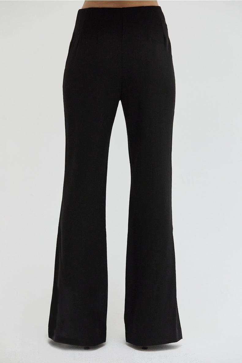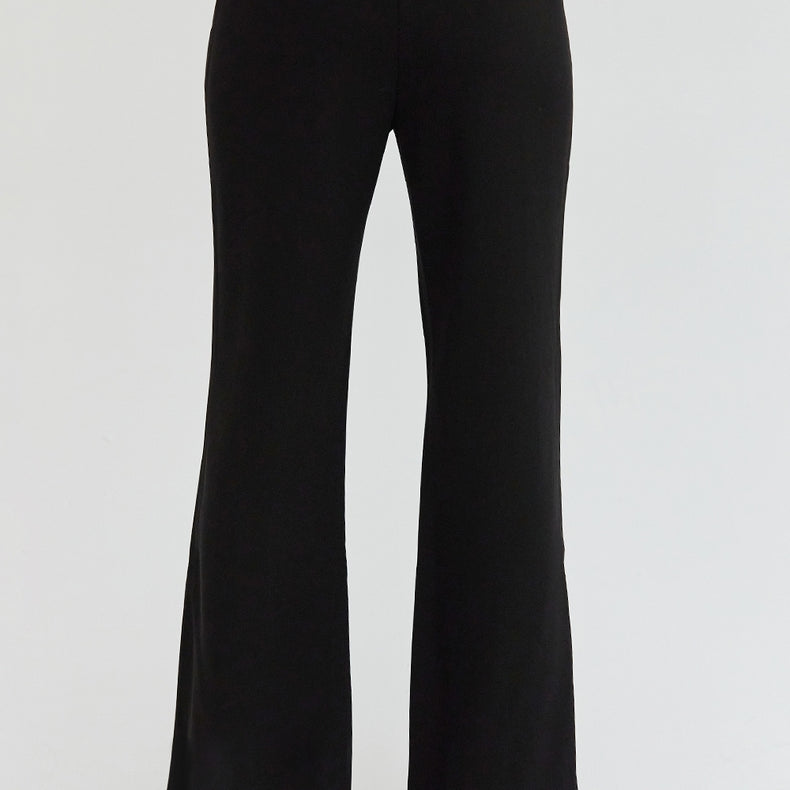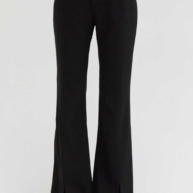 Elevate your style with our Noelle Front Slit Flare Pants. Made from a comfortable blend of polyester and spandex, these pants feature a high waist, front seam detail, and a flattering flare silhouette. Complete with a front hook and eye closure and hidden zipper, these pants also have convenient side pockets. Perfect for any occasion, these pants are a must-have addition to your wardrobe.